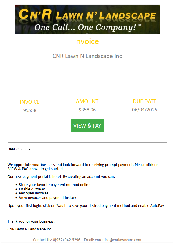 cnroffice@cnrlawncare.com to request another invoice to be sent.
